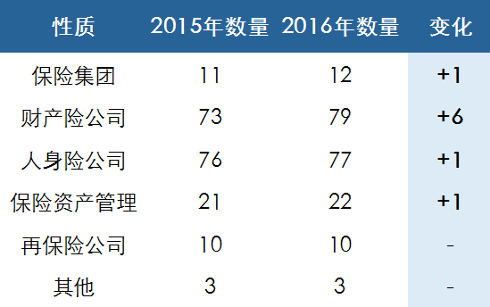 2016年,已开业全国保险机构共203家,较年初增加9家。其中,财产险公司增加6家,保险集团、人身险公司和资管公司各增加1家。